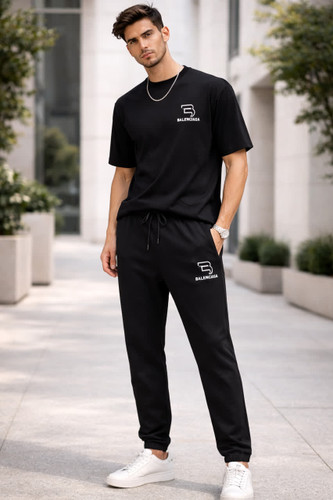ست تیشرت و شلوار گلکسی تک رنگ مشکی.شلوار دمپا ساده راستا