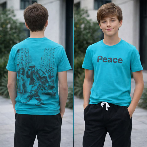 تیشرت قواره لش باکسی بچه گانه پشت چاپ برجسته و جلو چاپ.طرح و رنگ بندی