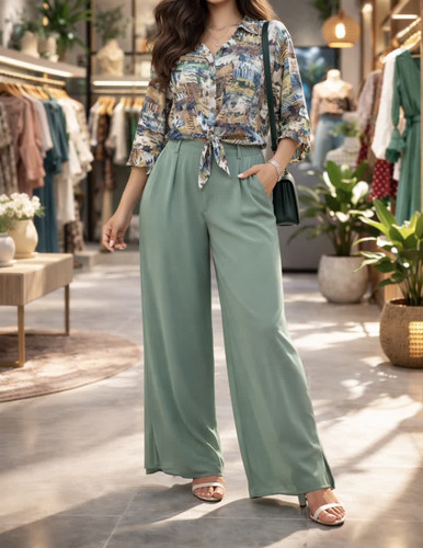 ست شومیز پاین گره و شلوار دامنی نخ شالتون